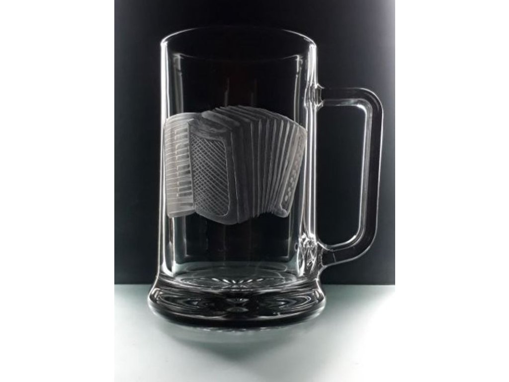 Kvalitní silnostěnný půllitr s uchem a rytinou motivu akordeonu. Tato sklenice udělá radost všem baskytaristům. Zcela originální dárek české výroby.