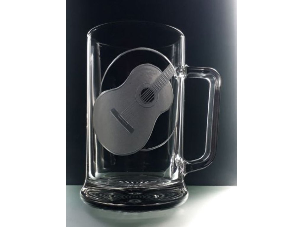 Kvalitní silnostěnný půllitr s uchem a rytinou motivu klasické kytary. Tato sklenice udělá radost všem kytaristům. Zcela originální dárek české výroby.