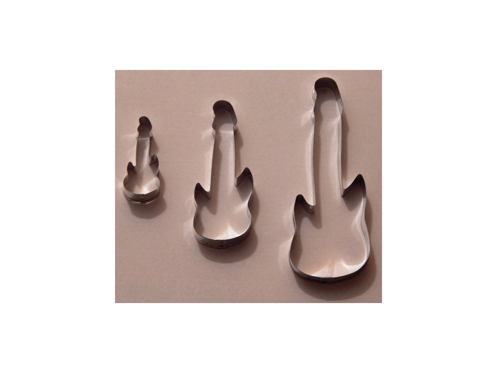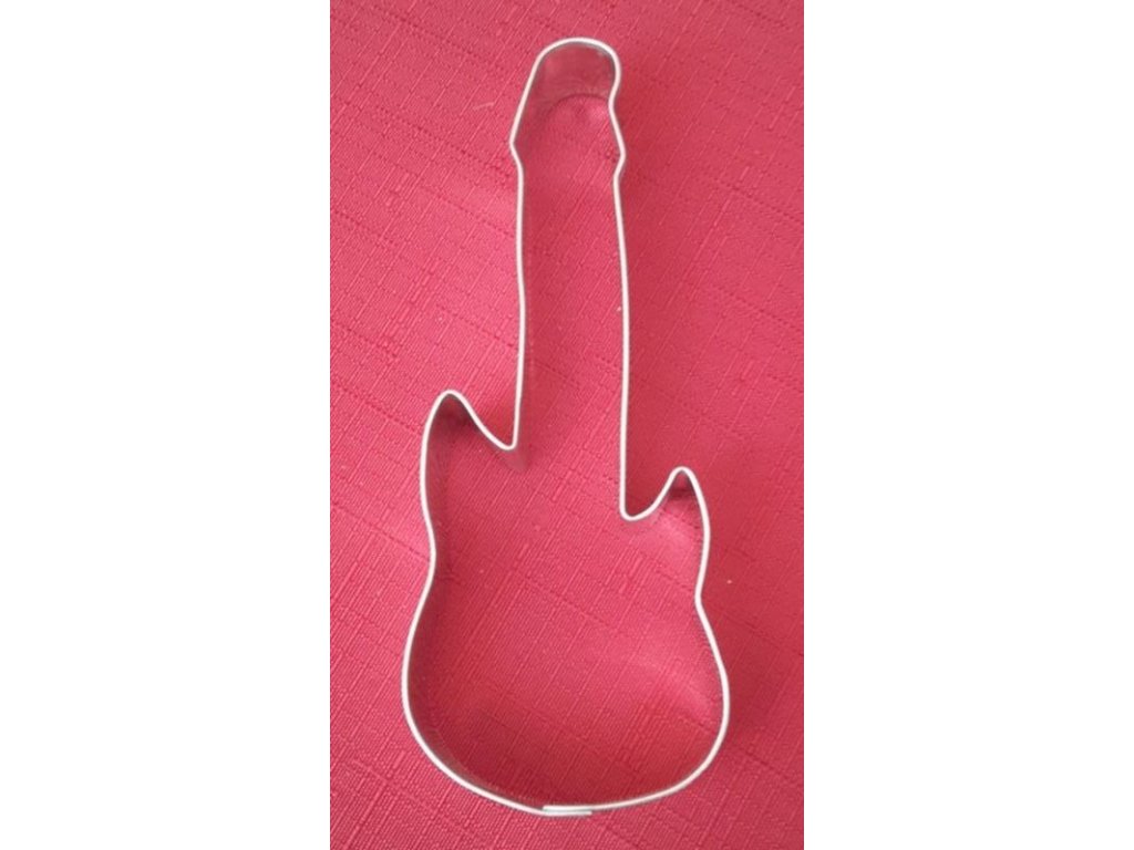 Větší vykrajovátko s motivem elektrické kytary.Materiál: pocínovaný potravinářský plech