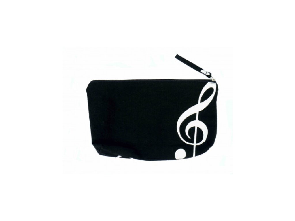 Praktická kosmetická taštička na vše potřebné zdobená hudebním motivem na zip s praktickým poutkem pro zavěšení. Vhodné také na psací potřeby.