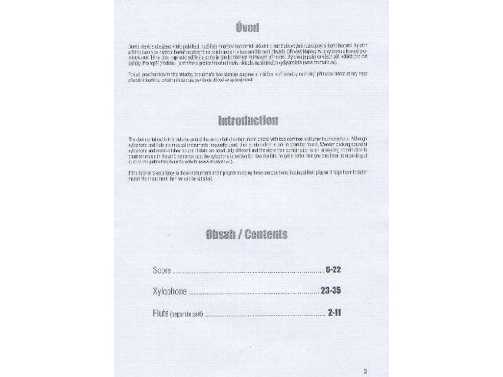 Dueto (5vět), které je obsaženo v této publikaci, rozšiřuje množství komorních skladeb s méně obvyklými nástrojovými kombinacemi. Xylofon a flétna jsou sice nástroje hodně používané ale jejich spojení v komorní hře není obvyklé. Dřevěný klapavý zvuk xylofonu a kovový pronikavý zvuk flétny jsou naprosto odlišné a proto je tato kombinace zajímavým přínosem.Zusätzliche Parameter