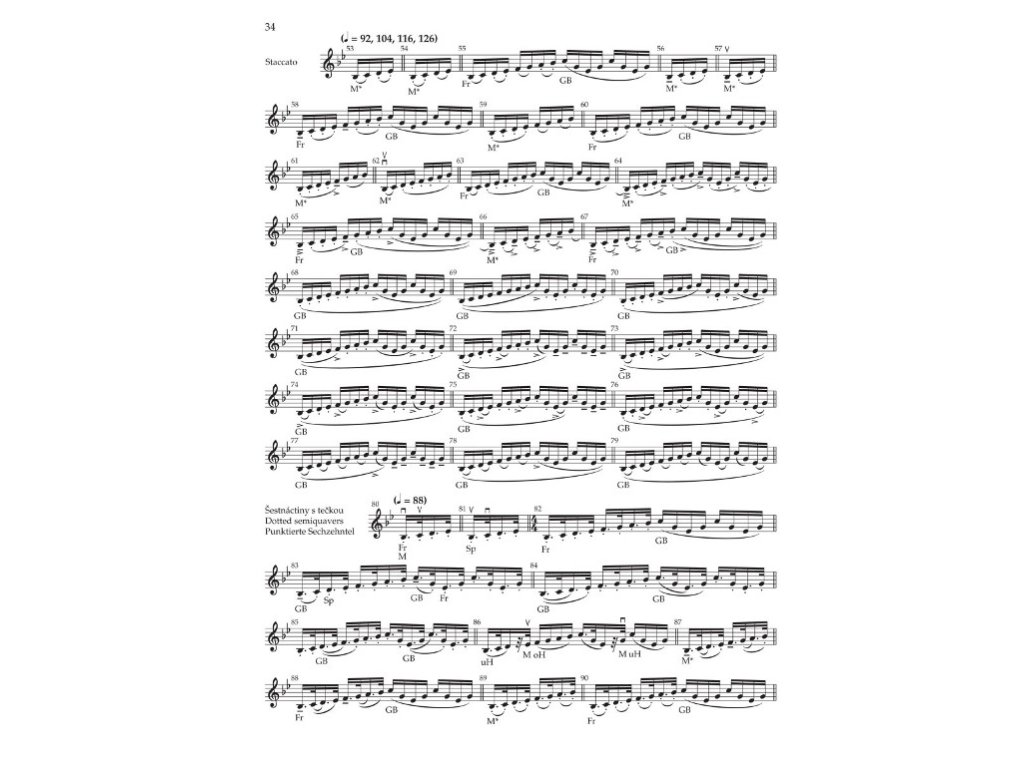 Ševčík Otakar: č. 16 Etuda v šestnáctinách (takt 3/4) se 68 variantami smyku