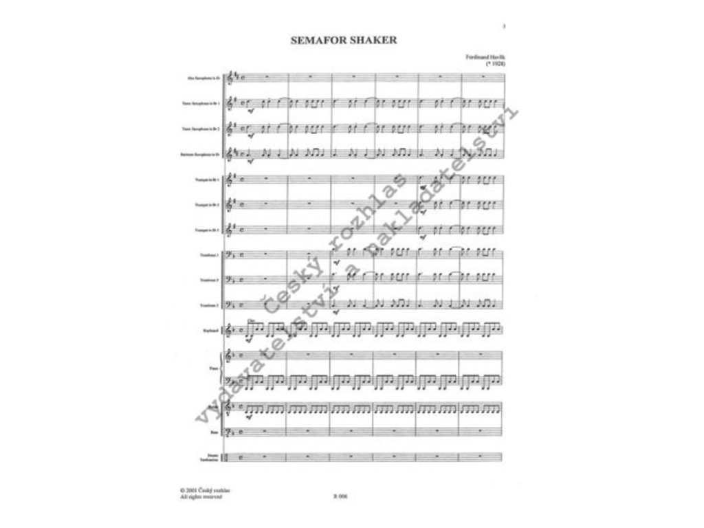 Semafor Shaker má poměrně velké obsazení. Počítá kromě čtyř saxů s plným žesťovým obsazením: 3 trubky a 3 trombóny. Drums jsou obarveny tamburinou.Podobně jako retrofilm Rebelové v naší kinematografii, předkládá Nakladatelství ČRo v reminiscenci 60.let dalších pět titulů - Peřeje, Melodie pro Zuzanu, Semafor Madison, Semafor Twist, Milostná píseň, které jistě zaujmou dnešní mladé hudebníky v orchestrech ZUŠ i v jiných amatérských kapelách. Byla to doba s jedinečnou atmosférou spojená s nejlepším obdobím divadla Semafor. Barva středně velkého bandu odpovídá zvuku orchestru, který tehdy pod rukama Ferdinanda Havlíka oslovoval nejen mladou generaci a má v sobě tolik síly, že si dokáže přitáhnout nové posluchače i dnes.