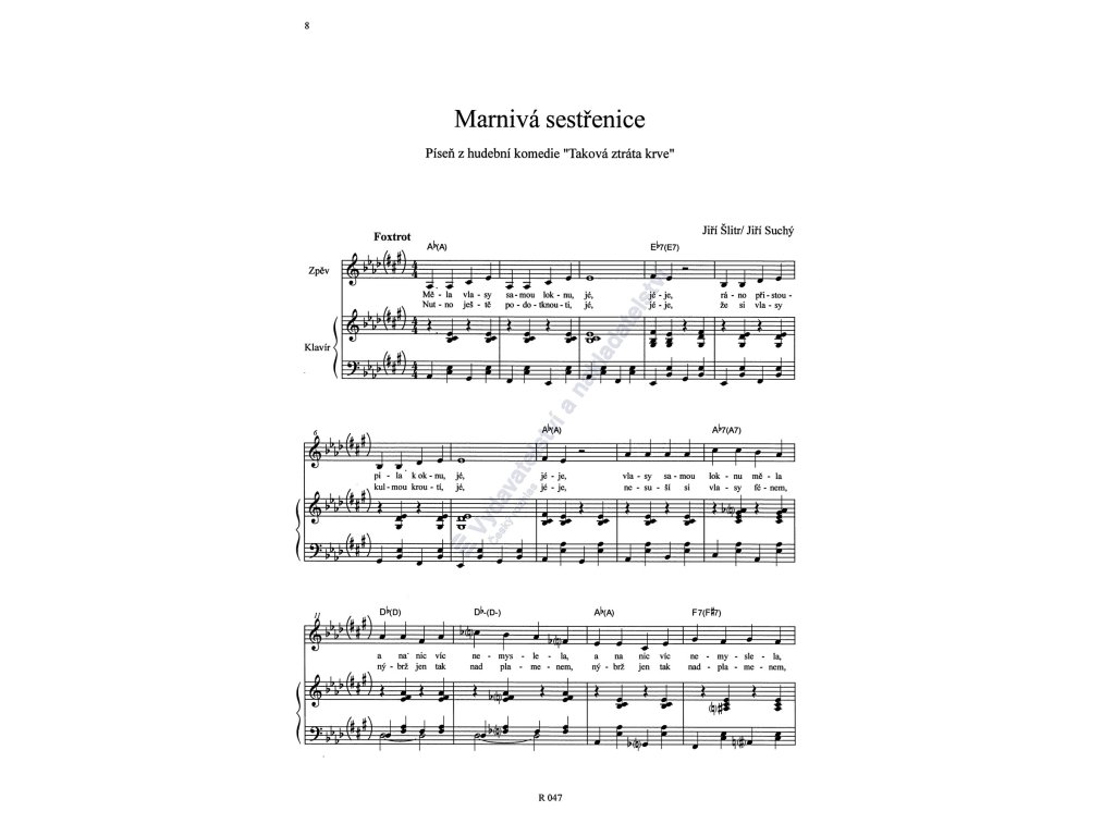 Marnivá sestřenice, Pramínek vlasů, Dítě školou povinné, Písnička pro Zuzanu, Klokočí: to je jenom nepatrný výčet písniček dvojice Šlitr - Suchý. Skladby z jejich autorské dílny vznikly již začátkem šedesátých let a přesto jsou stále živé.Hudební nakladatelství Českého rozhlasu přichází s publikací některých těchto písniček v úpravě Dana Fiedlera. V albu najdete kromě úpravy pro zpěv a klavír s variantami hlasů v Es, B a C ladění i noty pro sólový klavír. Jedná se o první notový materiál z připravované řady pod názvem RADIO-ALBUM. Publikaci ocení zejména Základní umělecké školy. Název řady RADIO-ALBUM nevznikl náhodou. Hudební nakladatelství tak navazuje na tradici z doby první republiky. Jednalo se o klavírní úpravy skladeb, které mohli posluchači slyšet nejenom na tanečních parketech, ale později hlavně z rozhlasových přijímačů. První svazek RADIO-ALBA byl vydán v roce 1925. Doufáme, že slogan: "Naše alba jsou nepostradatelná pro taneční svět", který byl tenkrát vždy na zadní straně obálky, se stane součástí i toho našeho, nově vydaného