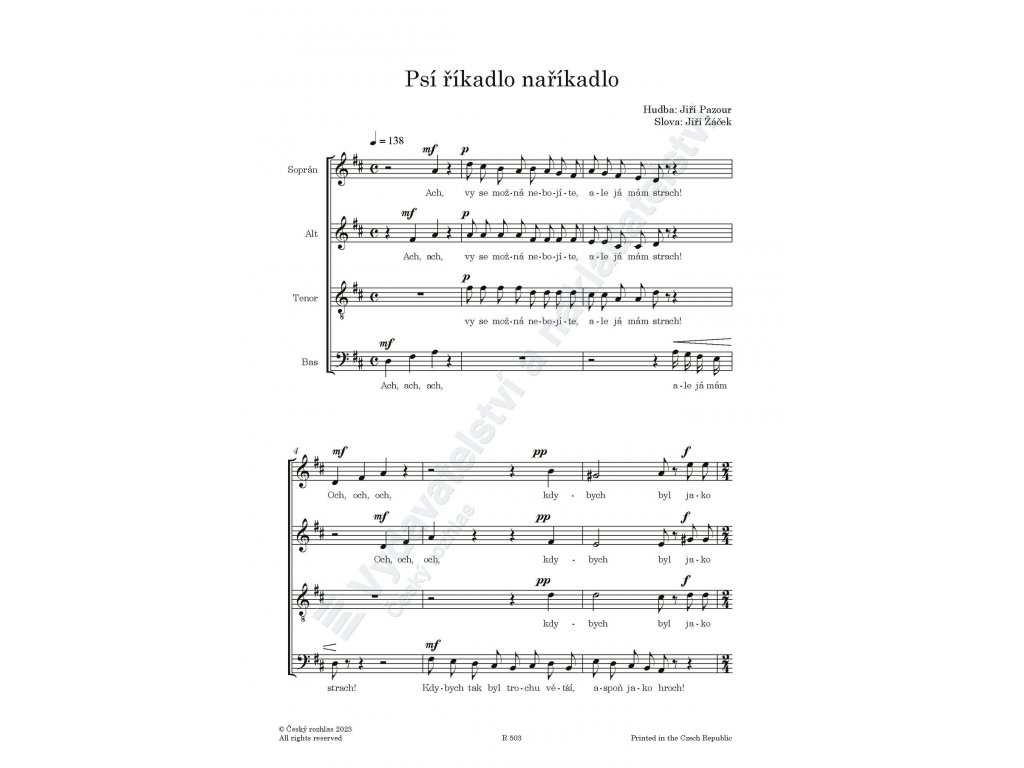 Mým záměrem bylo vytvořit řadu veselých a hudebně vtipných písniček v duchu Žáčkových textů, které potěší interprety i posluchače. Od doby vzniku je cyklus na pravidelném repertoáru řady profesionálních i amatérských sborových těles.“ Jiří Pazour