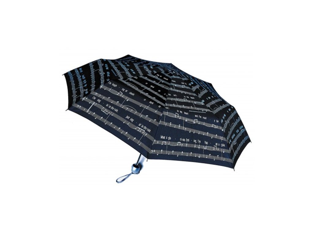 Klasický skládací deštník s notovým zápisem. Ideální do každé kabelky hudebnice či hudebníka. Na deštníku naleznete notový zápis známé písně - Singing In The Rain.