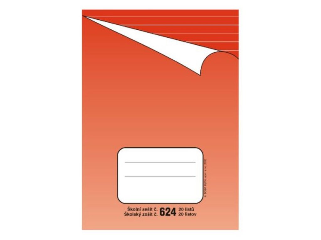 školní sešit č.624, formát A6, 20 listů, linkovaný, 70g/m2Školní notýsek s klasickým designem. Linky mají 8 mm rozsah. Vyrobený z bezdřevého papírů. Bezdřevý papír znamená, že sešit byl vyroben z vláken neobsahující dřevní hmotu. 20 linkovaných stránek je ve formátu A6. Papír má gramáž 70g/m2. Narozdíl od jiných značek školních sešitů, které mají většinou pouze 60g/m2. Vyšší gramáž papíru znamená vyšší pevnost v ohybu i tahu; vyšší gramáž zajistí menší průsvitnost a lepší kvalitu psaní.