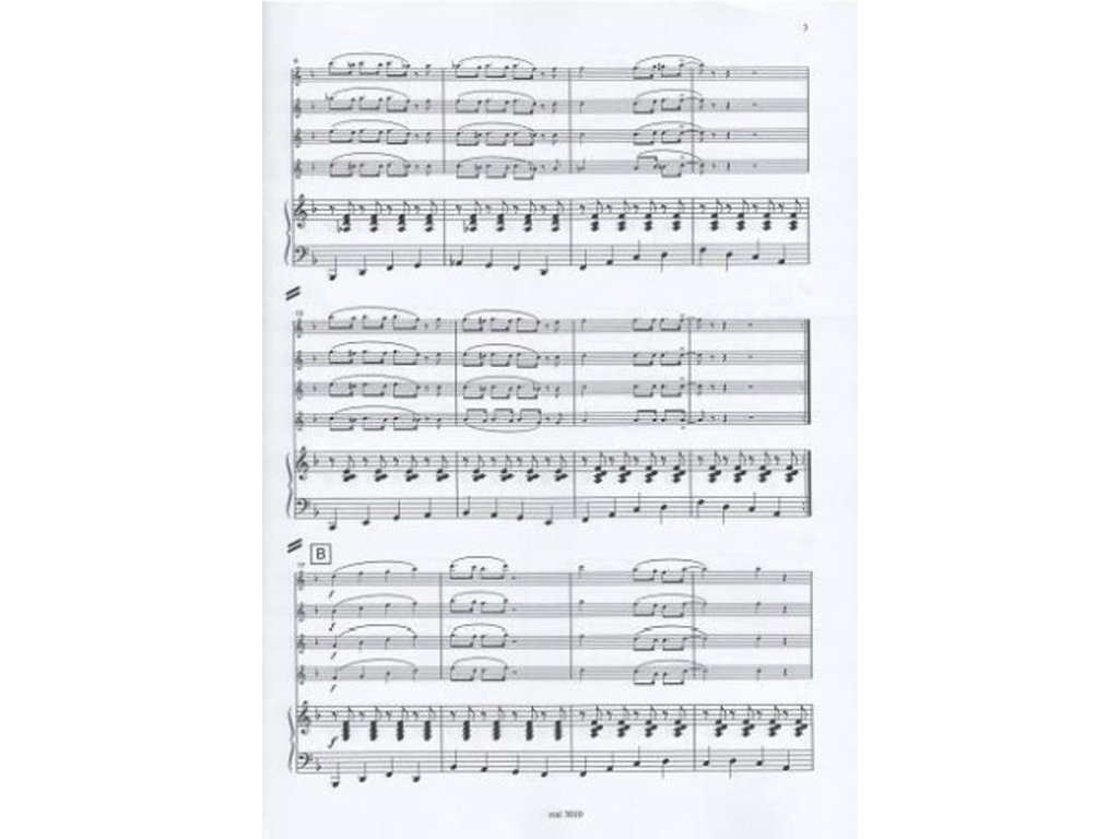 Rytmická skladba pro čtyři příčné flétny a klavír. 4fl /cl, pft, VP, partyAdditional parameters