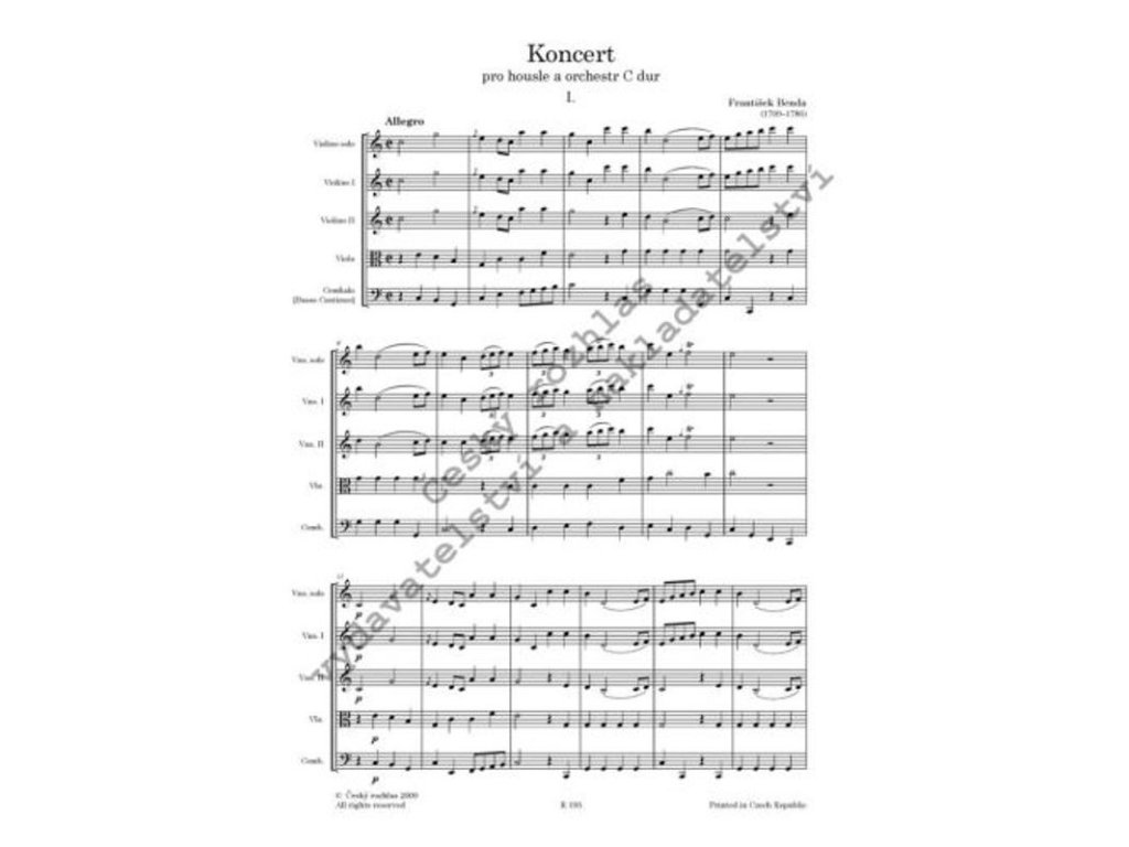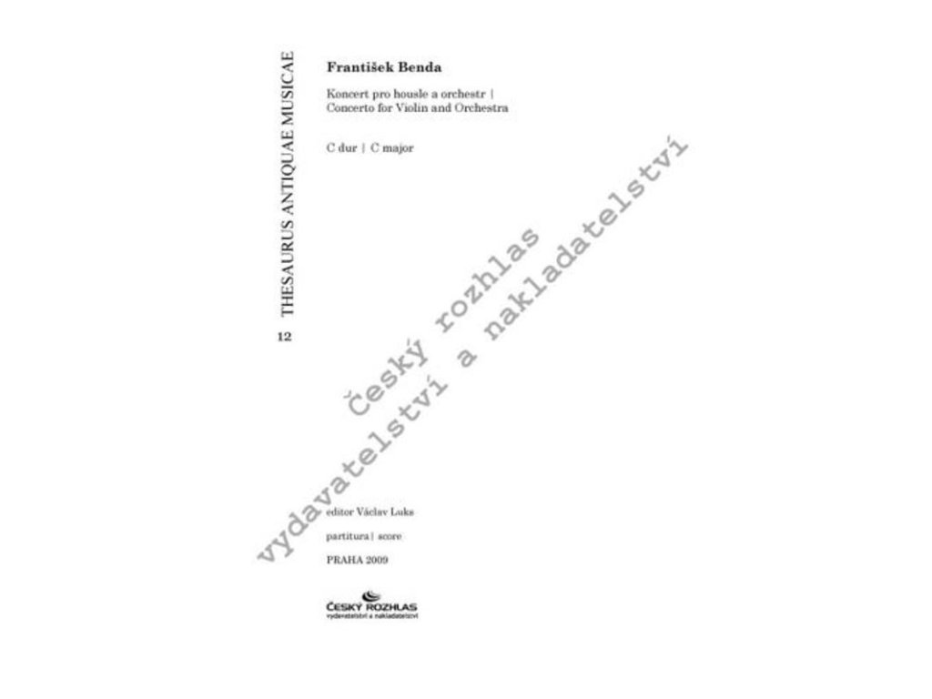 Skladatel a houslista František Benda (1709 – 1786) věnoval mnoho svých skladeb svému nástroji. Velký vliv na Bendovu virtuozitu a tvorbu mělo jeho angažmá v kapele dvorního orchestru budoucího pruského krále Friedricha II a působení v Drážďanech, kde měl příležitost se seznámit s významnými uměleckými osobnostmi (J. G. Pisendel, J. J. Quantz).Vydání Koncertu pro housle a orchestr C dur vychází z rukopisné partitury a partů uložených v Saské knihovně v Drážďanech. Jedná se o nejstarší dobový pramen koncertu, jehož autograf se nedochoval. Koncert zkomponoval František Benda pravděpodobně v Rheinsbergu (poznámka Reinsberg v rámci partitury) a svojí sazbou a obsazením odpovídá malému - ve srovnání s Drážďanami - obsazení Rheinsbergské kapely. Koncert pro housle a orchestr C dur je v pořadí dvanáctým titulem historické řady Thesaurus Antiquae Musicae.