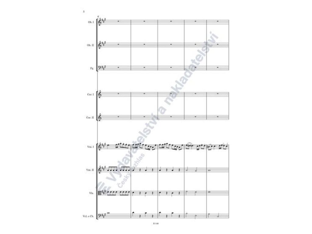 obsazení: ob I, II, fg, cor I, II in F, vni I, vni II, vle, vlc, cb