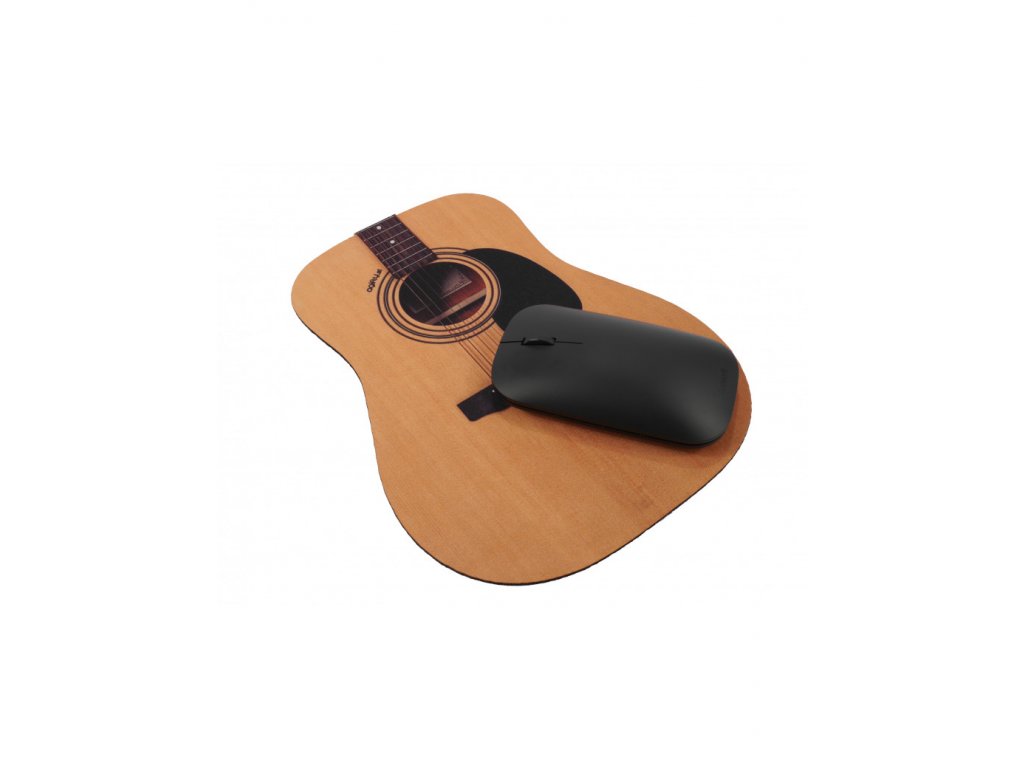 Podložka pod myš ve tvaru akustické kytary je vyrobená z pružné gumy s vrchní vrstvou polyesteru s potiskem. Výška podložky je 22cm.
