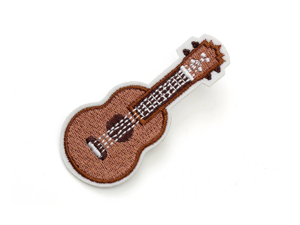 Látková brož, která udělá radost každému hráči na ukulele bez rozdílu pohlaví a věku. Způsob upevnění je spínací špendlík, takže je možné ji umístit nejen na klopu saka či košile ale může posloužit i jako ozdoba hudebního obalu či tašky nebo batohu.