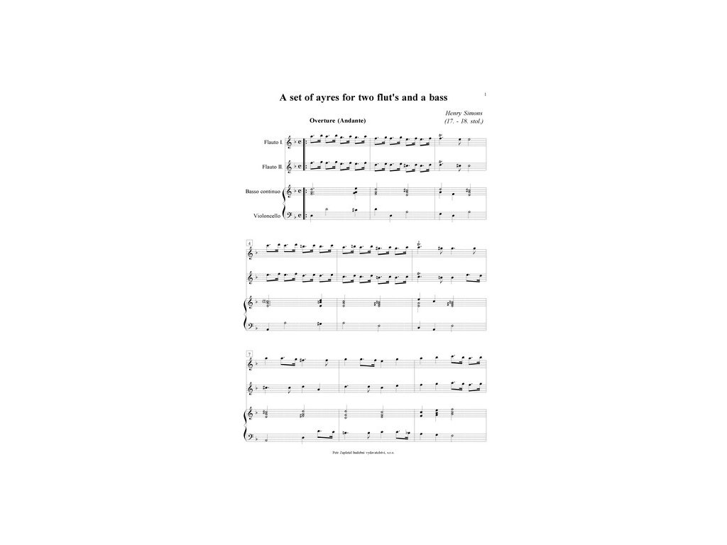 Nástrojové obsazení: flauto dolce I., II., /A,A/ (flauti traversi ad lib.), basso continuo.Ukázka: