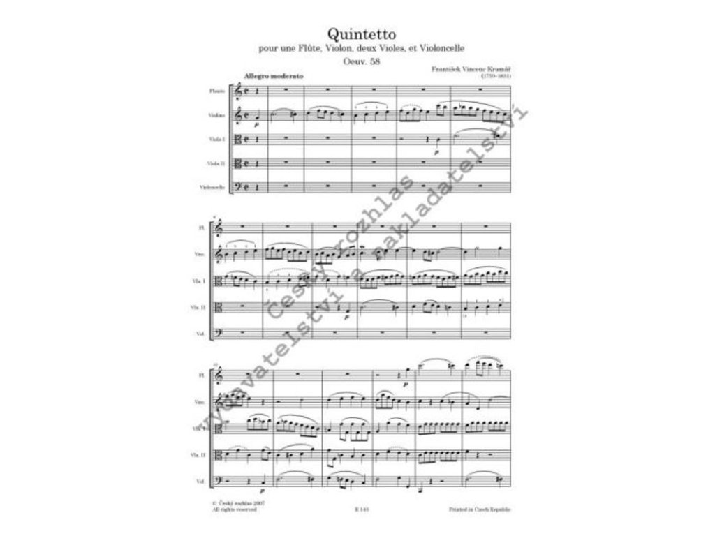 Quintetto pro flétnu, housle, dvě violy a violoncello F. V. Kramáře jistě zahrnuje pro něho typické znaky Haydnova a Mozartova kompozičního stylu, který je patrný zejména v odlehčeném charakteru úvodu třetí a čtvrté věty, kde se flétně dostává výrazné role vzhledem k ostatním nástrojům.Předlohou kritického vydání Quintettu op. 58 F. V. Kramáře je tisk vídeňské Chemische Druckerei, uložený v Hudebním oddělení Národní knihovny ČR. Tisk vyšel ještě za skladatelova života, přestože není datován, doba jeho vzniku spadá pravděpodobně do období kolem roku 1807. Titul obsahuje také přetištěná faksimile prvních stran jednotlivých partů.