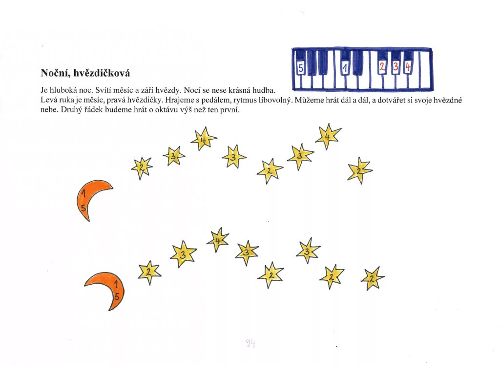 obsahuje krátké skladbičky, doplňující cvičení a kreativní úkoly