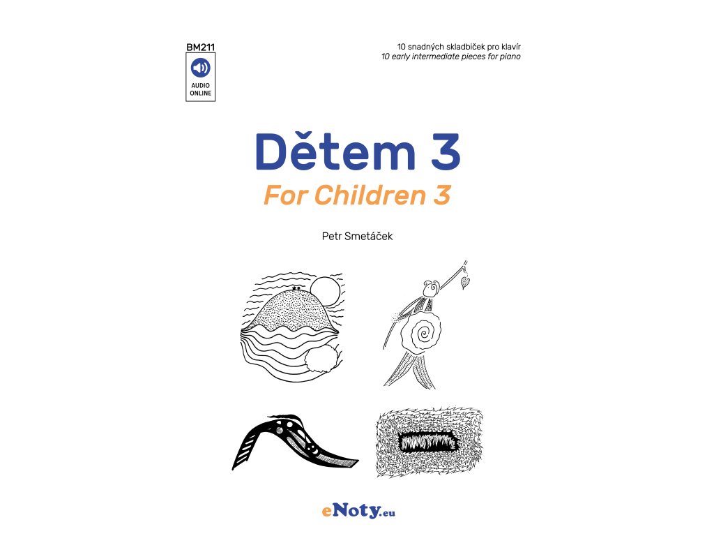 Dětem 3 je třetí pokračování oblíbené série klavírních miniatur Petra Smetáčka. Obsahuje 10 hravých, melodických a technicky přístupných skladeb, které autor napsal přímo pro své žáky – a právě oni také dali skladbičkám jejich originální názvy. Titul je ideální pro děti na ZUŠ, domácí hraní i malé koncerty.