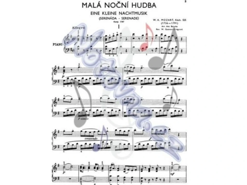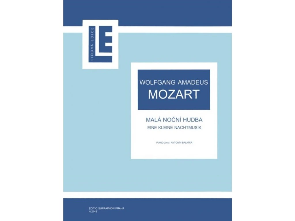 Malá noční hudba (KV 525) jako jeden z opravdových hitů klasické hudby bývá vydávána v nejrůznějších úpravách. V Lidové edici vychází Mozartova původně smyčcová serenáda v úpravě pro klavír.Arr. Antonín Balatka, rev. W. Gaierová-Drégrová