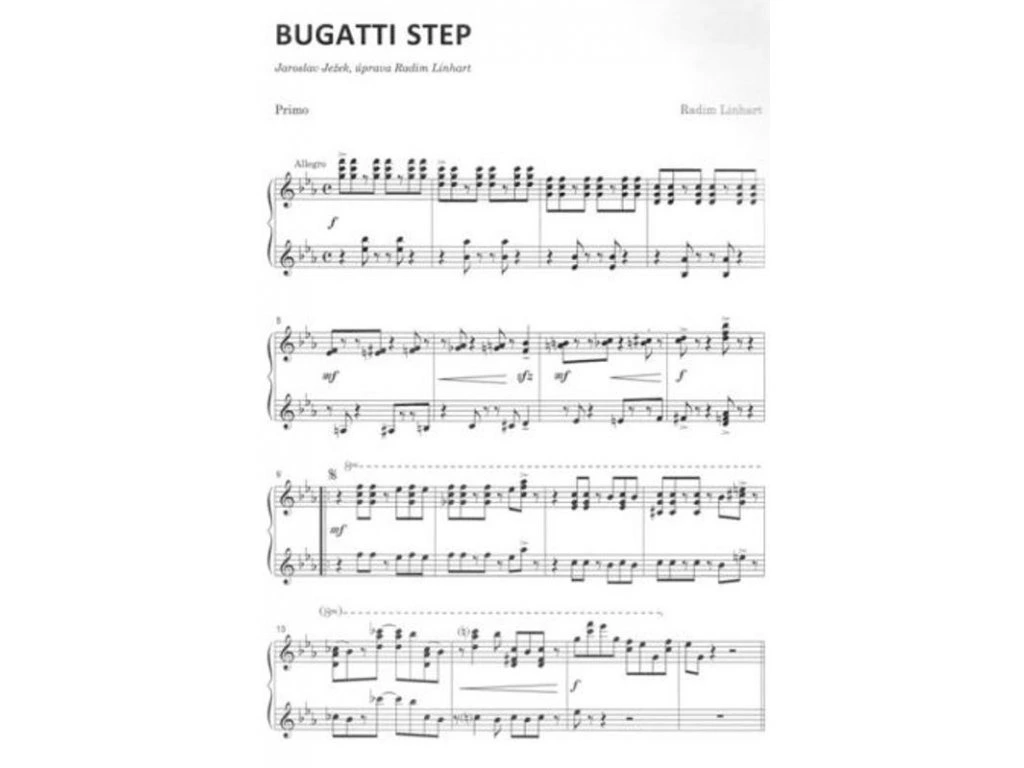 Jaroslav Ježek patří mezi největší velikány éry jazzu nejen u nás, ale i ve světě. Jeho skladba Bugatti step se dočkala celé řady různých úprav a vydání. My Vám nyní nabízíme verzi pro čtyřruční klavír, kterou upravil Radim Linhart. Tato skladba se tak v podání dvou hráčů stává daleko lépe hratelnou a přitom si zachovává svůj osobitý a nezaměnitelný ráz.Doplňkové parametry