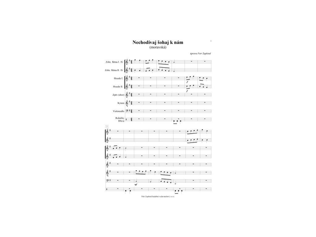 Nástrojové obsazení: zobcová flétna I., II. /S,S/, housle I., II., zpěv, kytara, violoncello, bicí nástroje.Ukázka:
