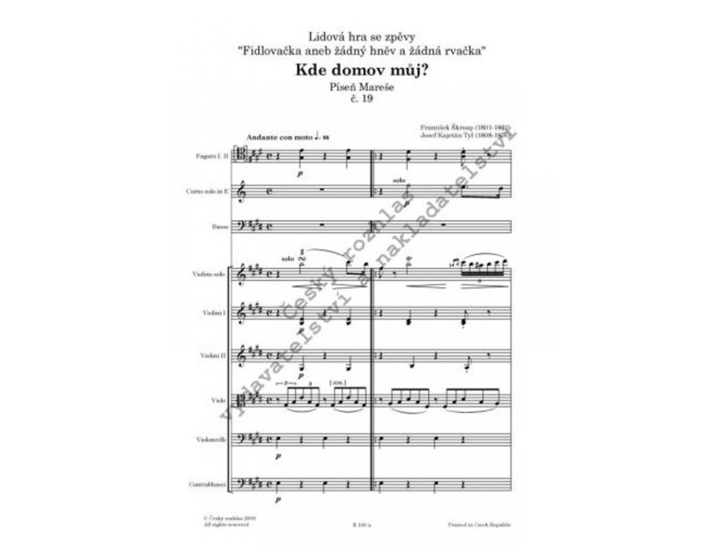 Píseň "Kde domov můj?", která poprvé zazněla 21. prosince 1834 ve Stavovském divadle v hudební frašce "Fidlovačka aneb Žádný hněv a žádná rvačka", sehrála - a dosud sehrává - nezastupitelnou roli v historii českého národa. Základním pramenem nového vydání této písně byl původní Škroupův rukopis.