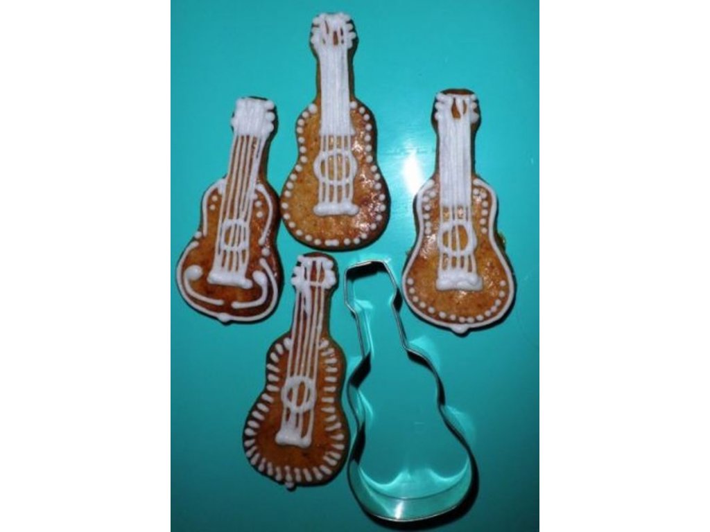 Střední vykrajovátko s motivem klasické kytary.Materiál: pocínovaný potravinářský plech