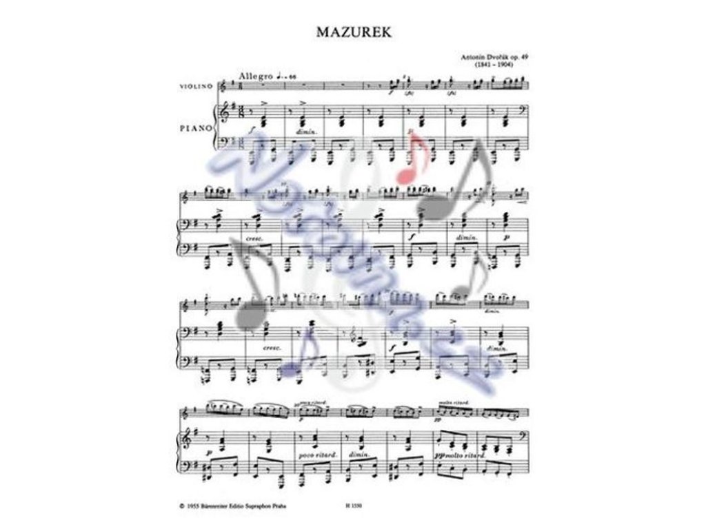 Zájem o Dvořákovu tvorbu přiměl jeho nakladatele Fritze Simrocka, aby žádal po Dvořákovi nové, tentokrát drobnější dílo, pokud možno opět slovanské . Z tohoto podnětu vznikl Mazurek e moll pro housle a klavír. Dílo patří k oblíbeným koncertním číslům virtuózního charakteru. Svazek v rámci prvního Souborného kritického vydání děl A. Dvořáka editorsky připravil Jan Hanuš a Karel Šolc.