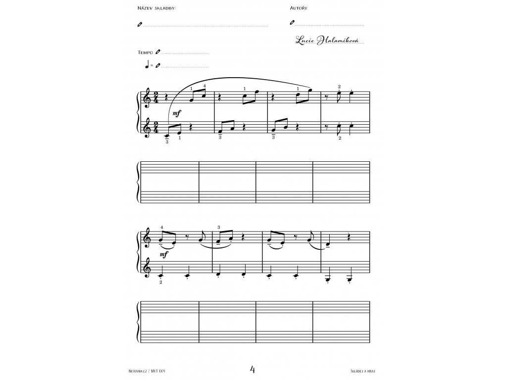 Publikace Skládej a hraj je netradičním klavírním albem, které obsahuje neúplné skladbičky k dotvoření. Jsou určeny pro všechny klavíristy, kteří chtějí zažít tvořivý způsob práce se skladbou. Skladbičky jsou svou obtížností určeny pro mírně pokročilé klavíristy, ale tvořivá práce je vhodná pro všechny klavíristy bez rozdílu pokročilosti.